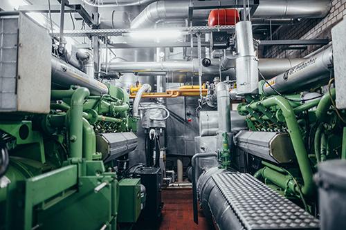- Wärmeerzeuger: 2 BHKW (gesamt: 1052 kWel), 2 Kessel (gesamt: 9000 kWth)